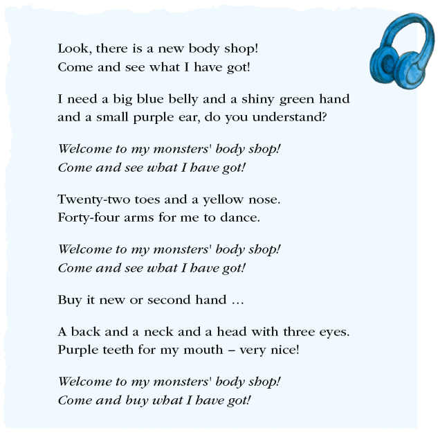 Die Merkbarkeit von Liedtexten sollte nicht unterschätzt werden. Dass es nicht „welcome IN“, sondern „welcome TO“ heißt, wird im Monster Body Shop (easy 1, Unit 4) ohrwurmig eingetrichtert, nebenher das oft ungeliebte „have got“ (statt dem bloßen „have“):