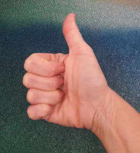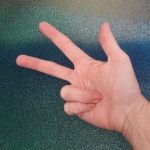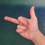Nachdem der Wert 2 aber dem Zeigefinger allein zugeschrieben ist, zeigt man die Zahl 2 nur mit dem Zeigefinger. Der Daumen bleibt schön drin!